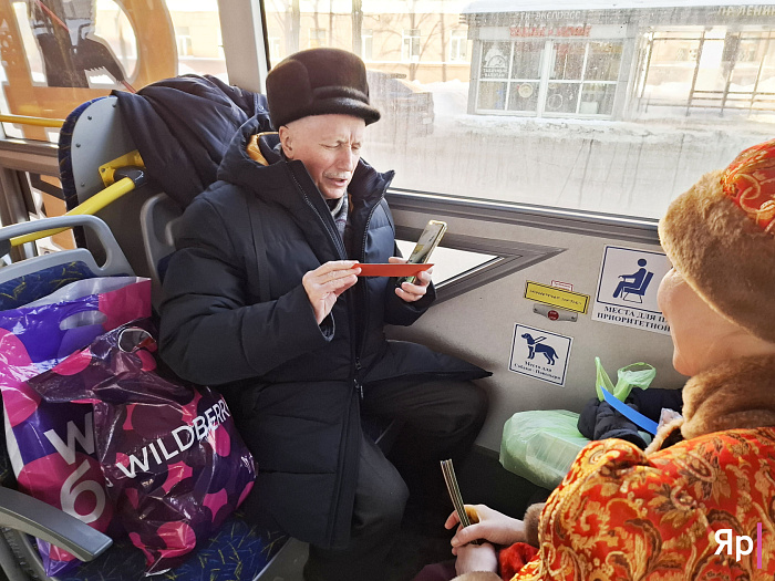 Порой кто-то заходит немного нахмуренный и серьёзный с мороза. Но в салоне масленичного троллейбуса настроение быстро поднимается. Зайдут — и сразу светлеют лица-то, оттаивают.