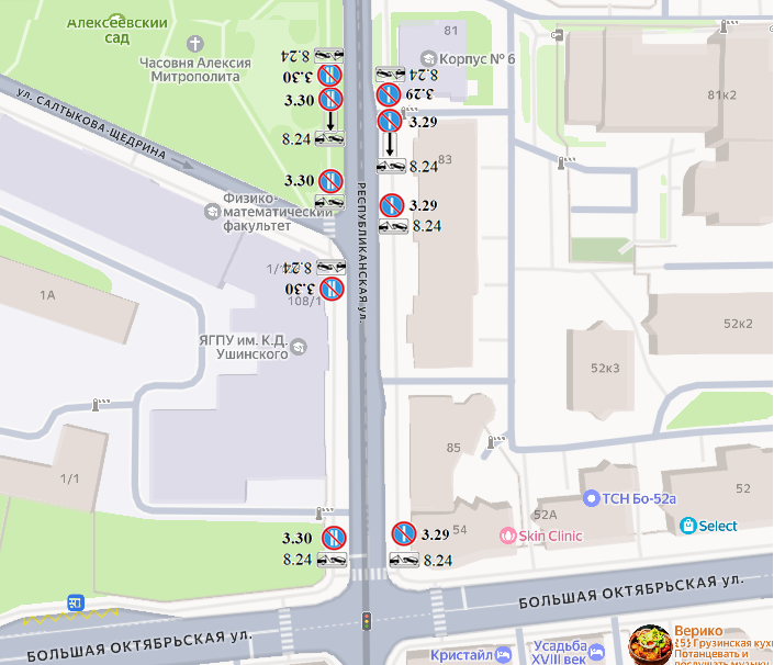 Ограничение стоянки по чётным и нечётным числам месяца вводится на участке улицы Республиканской от улицы Большой Октябрьской до дома № 81 по улице Республиканской.