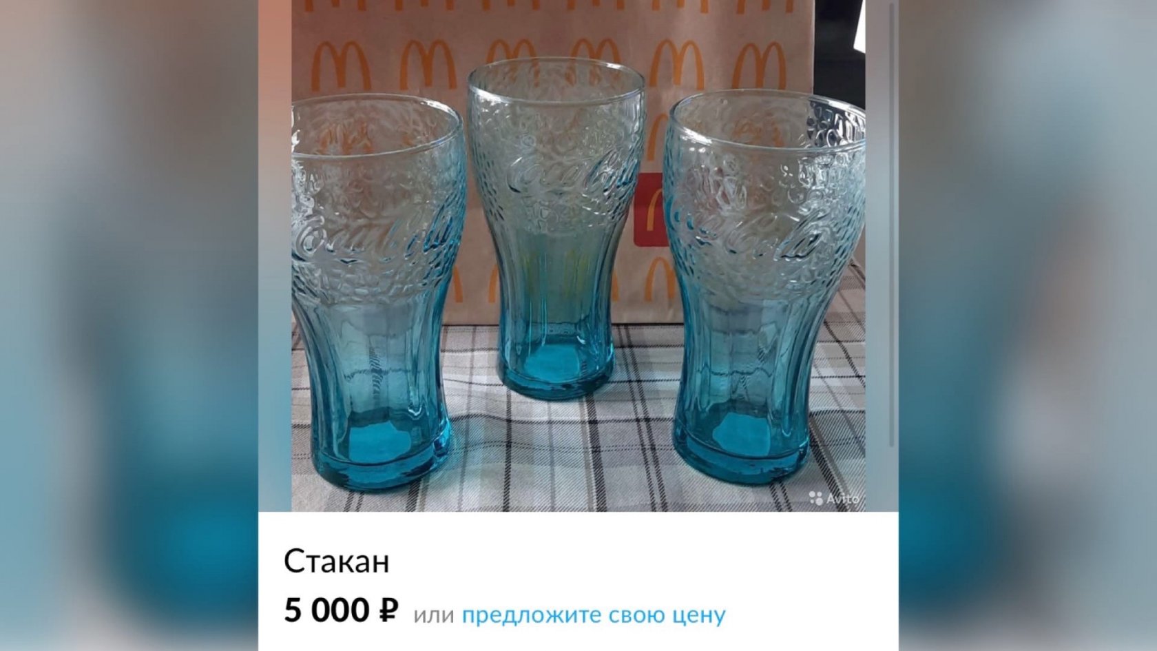 — Эксклюзивные стаканы от Макдоналдса, как на фото. В наличии осталось всего лишь две штуки, — пишет девушка в объявлении. — Цена указана за один стакан.