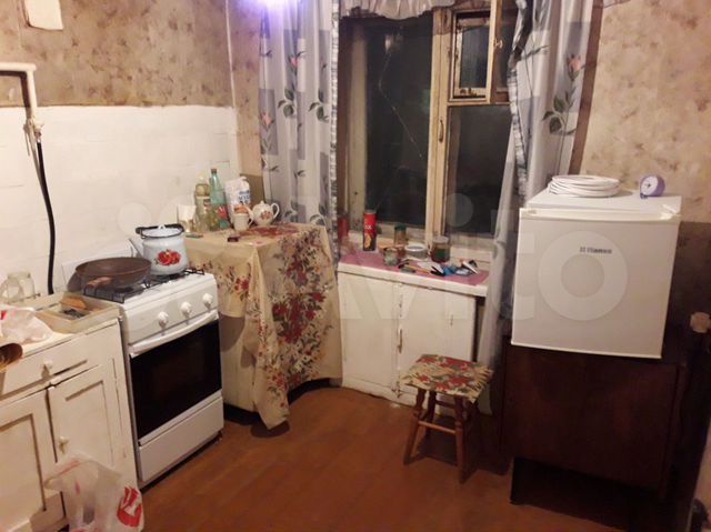 Квартира однокомнатная и находится на втором этаже пятиэтажки. Есть мебель: диван, стол со стульями, шкафы. Из техники — холодильник и электрическая плита. Окна в квартире пластиковые.