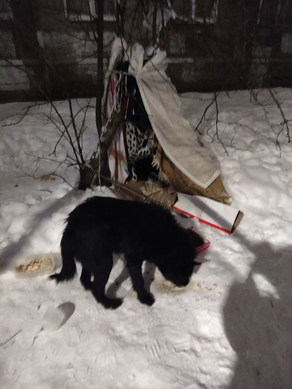 На прошлой неделе под деревьями рядом с обычной брагинской пятиэтажкой появился шалаш. Как оказалось, построили его дети, но совсем не для игр. А для пса.