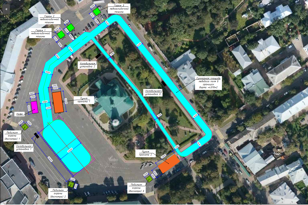 В целом, больших отличий от прошлогоднего варианта нет. Ледовый комплекс будет состоять из корта и ледовых дорожек. Общая площадь катка превысит четыре тысячи квадратных метров. Рядом расположатся тёплые павильоны и раздевалки, пункт проката. Также на площади разместят ярмарку, горки, аттракционы, сцену, кафе, установят светодиодный экран.
