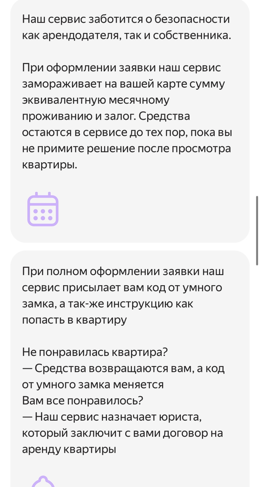 Жительница Ярославля перешла по ссылке — по её словам, сайт очень похож по оформлению на Яндекс.Аренду. Но она вовремя заметила странный пункт: нужно заморозить средства на карте во время просмотра. Если отказаться от сделки, то деньги вернутся. Но на настоящем сайте Яндекс.Аренды такого пункта нет.
