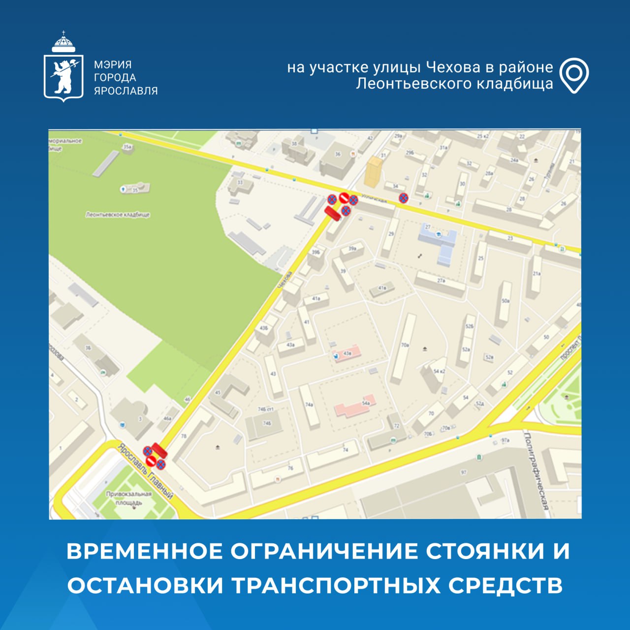 Кроме того, вводятся ограничения остановки и стоянки в районе Успенского кафедрального собора с 19 часов 6 сентября до 11 часов 7 сентября. А с 19 часов 6 сентября до 15:30 7 сентября — на участке улицы Чехова и Угличской в районе Леонтьевского кладбища.