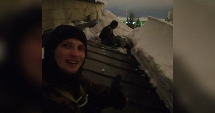 Игорь и его коллеги работают круглосуточно. Каждая бригада отвечает за очистку кровель зданий от сосулек, снега и наледи, но иногда приходится и снег расчищать — нельзя же оставить его под крышей.
