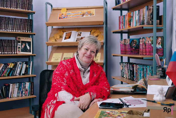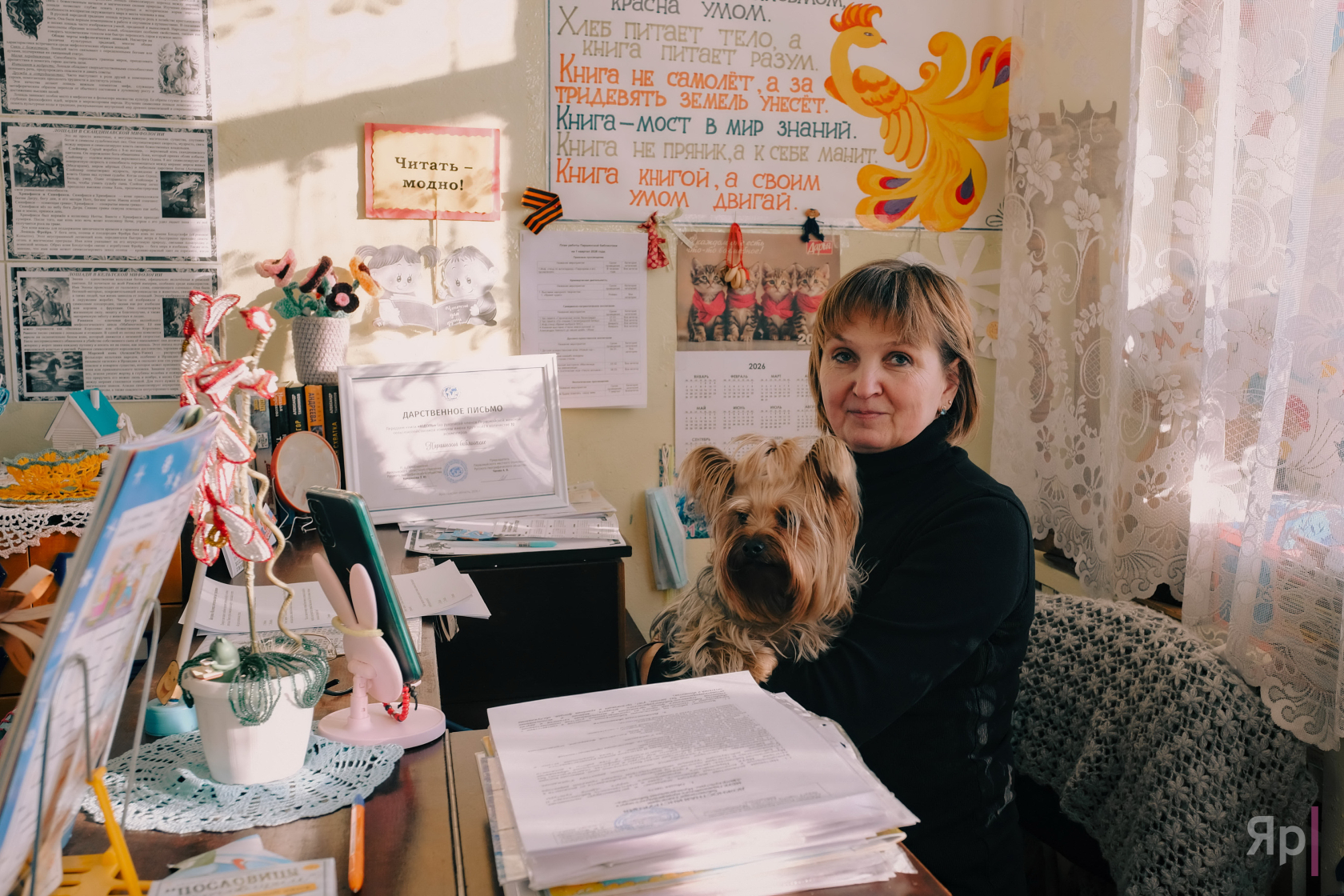 Ирина Сальникова, 53 года. Работает в Паршинской библиотеке 13 лет. На рабочем месте всегда с домашним питомцем — псом Алексом:Книга — лучший подарок. Это верно! Когда езжу в Ярославль, покупаю книги. Они дорогие, но покупаю. Читаю и приношу сюда, в библиотеку. Если у кого-то есть читательский запрос, то еду в районную библиотеку, в рабочий посёлок Пречистое, — и беру там. Потом возвращаю.