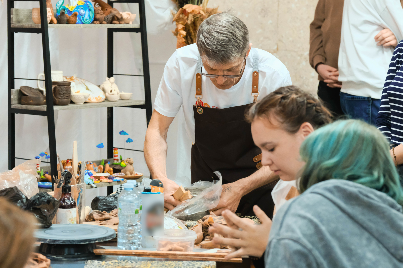 В ремесленной зоне мастер Сергей Ребров учил школьников чувствовать материал и создавать из глины бытовые мелочи, «в которых есть душа». Рядом в уютном уголке Оксана Федотова показывала, как из шерсти романовской овцы можно свалять целое произведение искусства.