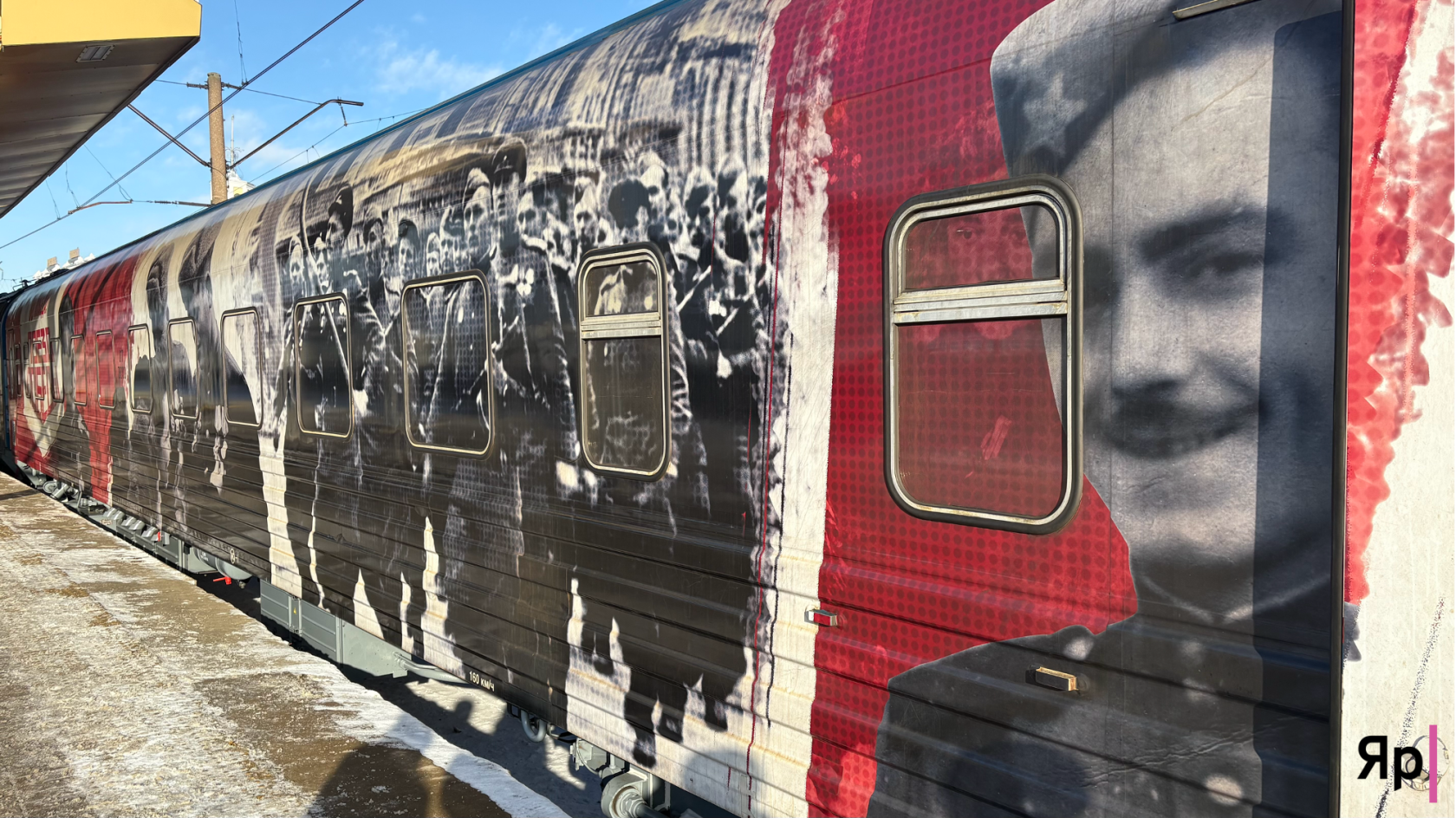 Уже с перрона он поражал: длинный, тяжёлый состав, на вагонах — лица тех, кто не вернулся. Казалось, они всматриваются в прохожих ещё до того, как те ступят внутрь. Возникло тихое волнение: сейчас можно увидеть то, что нельзя забыть, — только прожить заново.