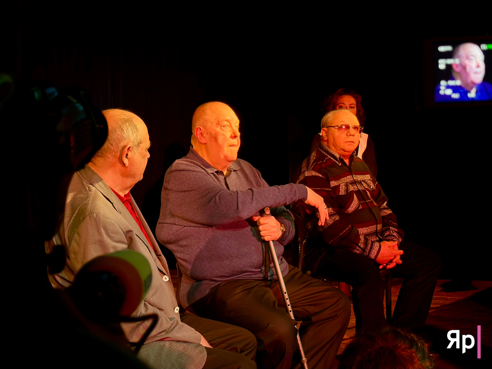 Три театральных звонка — и зал затихает. На сцене — актёр театра и кино Владимир Гусев, тот самый, кто вместе с Ваксманом играл в «Интервью». Он говорит, что это были 25 лет счастья — творческого и человеческого.