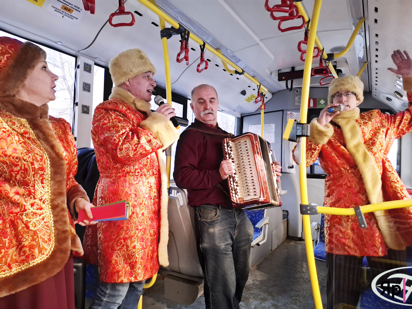 Успеть поучаствовать в таком представлении ещё есть возможность у всех желающих. Праздничная машина имеет бортовой номер 204. Работает этот троллейбус на первом маршруте. Правда, выступления проходят только на двух рейсах. В будни тематический рейс стартует от Ярославля Главного в 13:26 и 14:23, в выходные — в 12:28 и 13:22. Развлекают пассажиров в течение всего пути до конечной у шинного завода и обратно. Продолжит работу масленичный троллейбус по 22 февраля включительно.