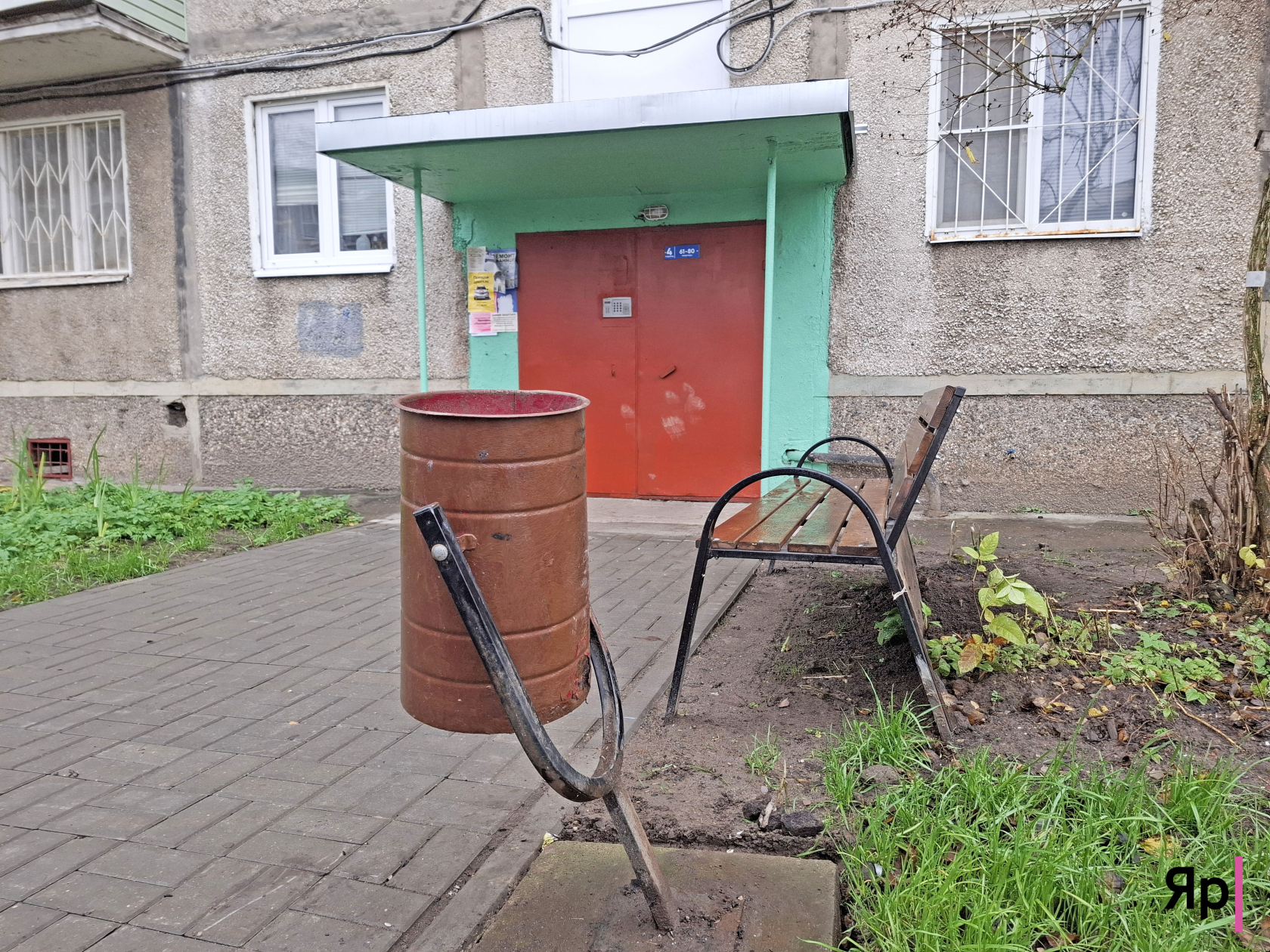 Поработать здесь предстоит ещё и с малыми архитектурными формами. Так, у одного из подъездов недавно ночью неизвестные пытались сломать урну и ногами пинали дверь. Разумеется, за выходки хулиганов подрядчик вряд ли может быть в ответе. Разве что только за крепление МАФов — оно явно должно быть более качественным.