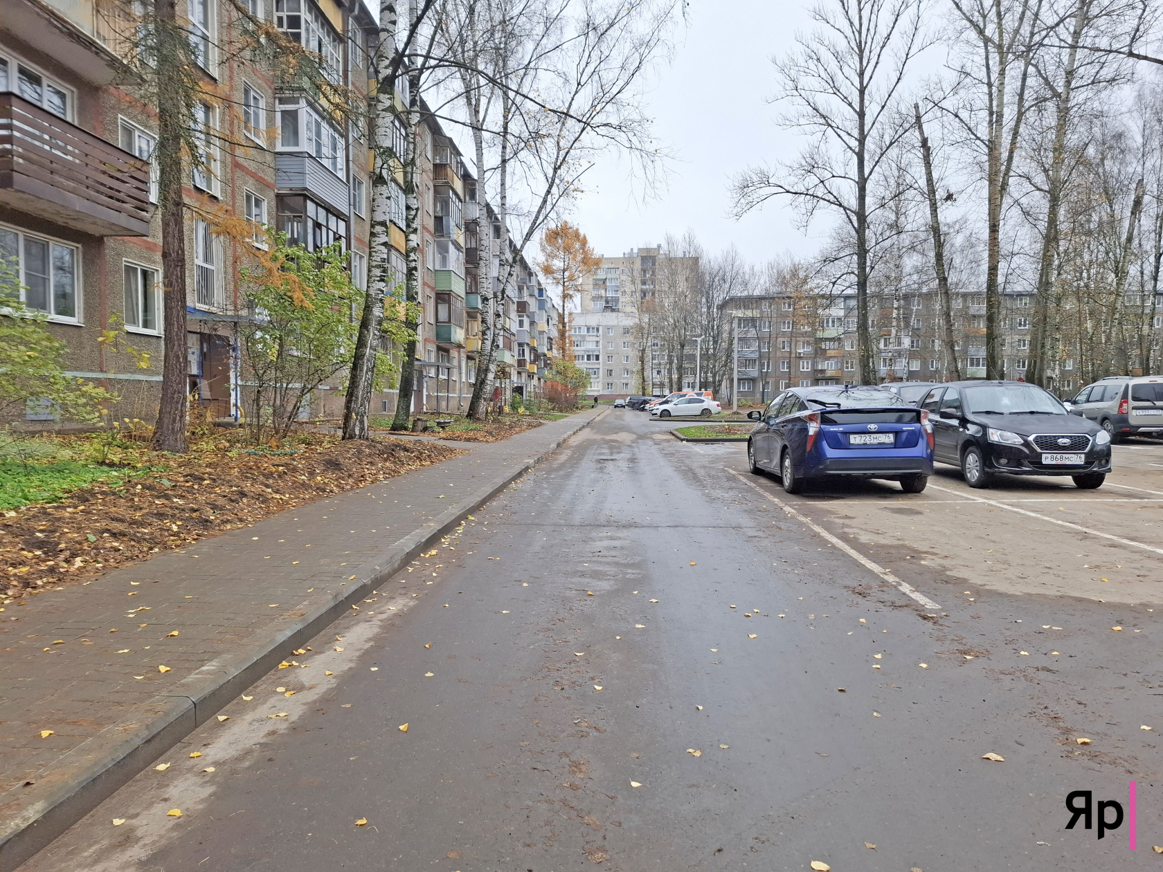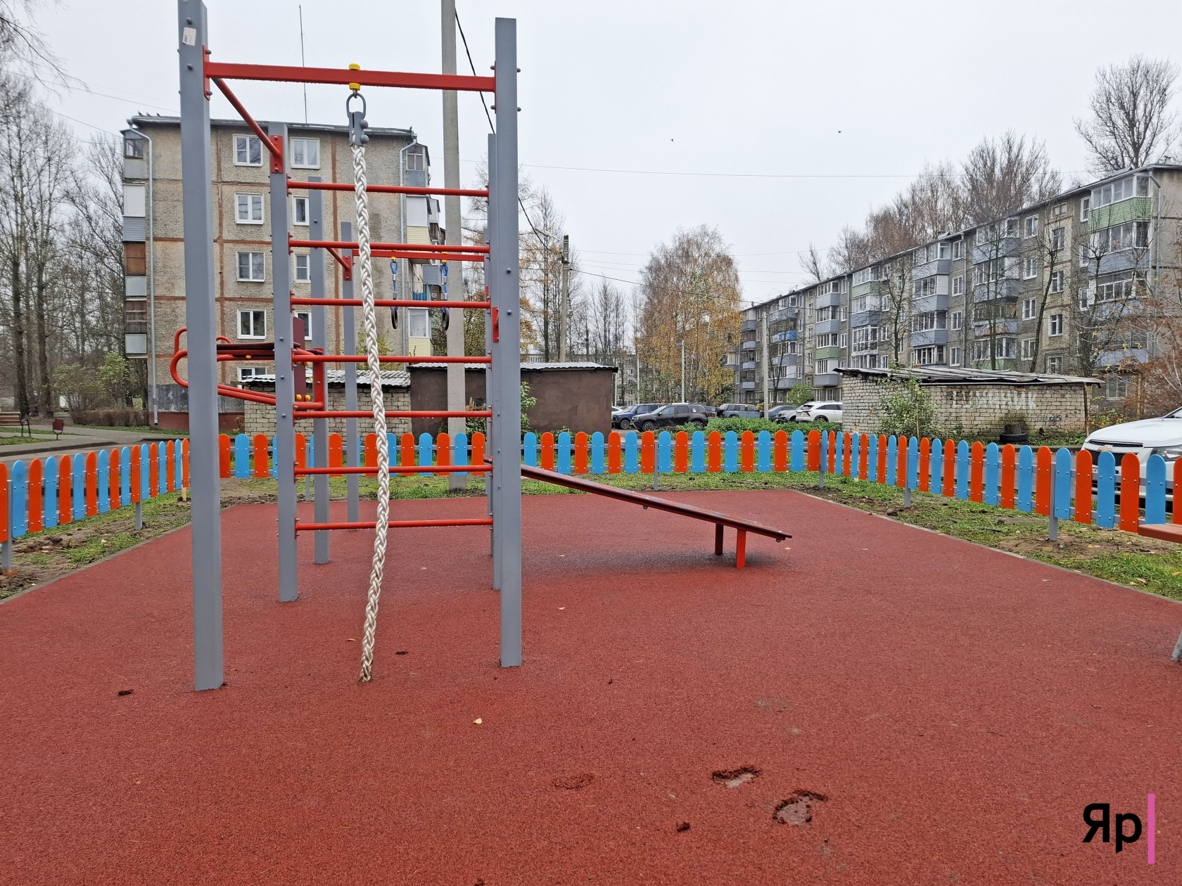 Здесь обустроили парковочные места (для этого вырубив часть деревьев), заменили асфальт на проезжей части, тротуары выложили плиткой, установили бордюры. И даже установили небольшой детский городок.
