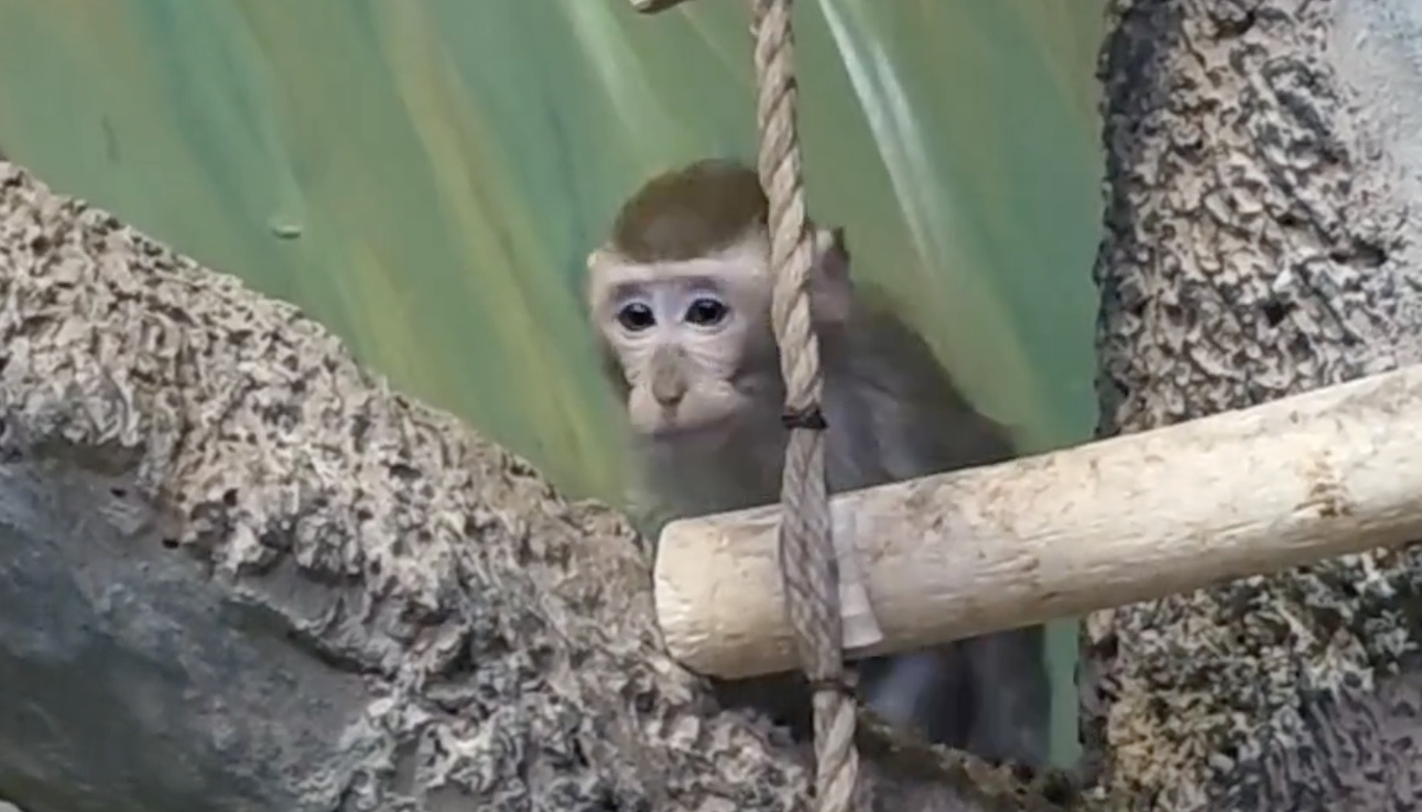 Макак Абу заметно подрос, и с возрастом его активность только увеличилась.