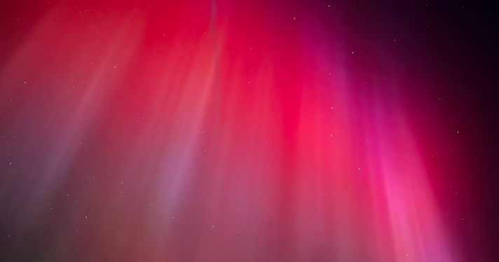 «Одно из самых лучших сияний. Несмотря на запредельные, исторические параметры магнитной бури (выше, чем 10 мая 2024 года) динамика сияния умеренная. Но цветовая палитра шикарная», — рассказал Михаил Завьялов.