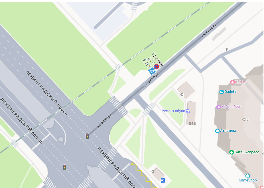 Знаки установят в районе пересечения улицы Батова и второстепенного проезда Ленинградского проспекта при движении в сторону Ленинградского проспекта.