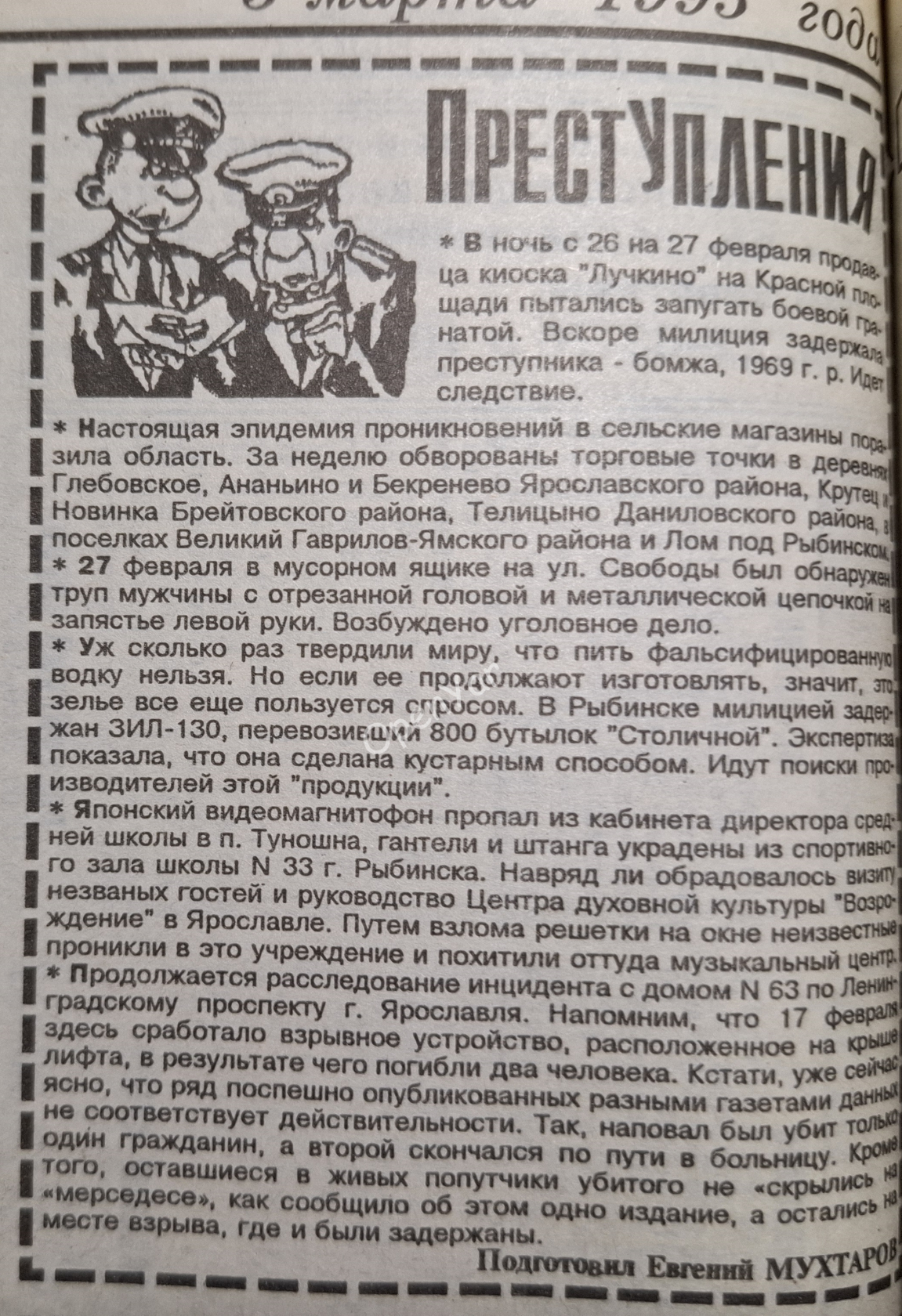 Типичная криминальная хроника 90-х. Газета «Ярославская неделя», 1995 год. Оцифровка: «Открытый Ярославль»