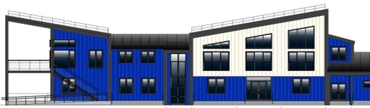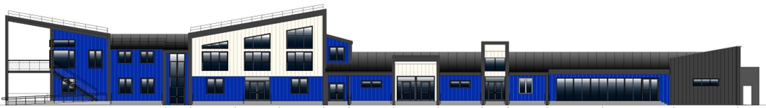 Планируется, что здание будет в один и два этажа, со скатной малоуклонной кровлей. В нём разместятся помещения для спортсменов и тренеров, администрации, посетителей и зрителей, а также технические. В нём будут проводиться тренировки и соревнования.